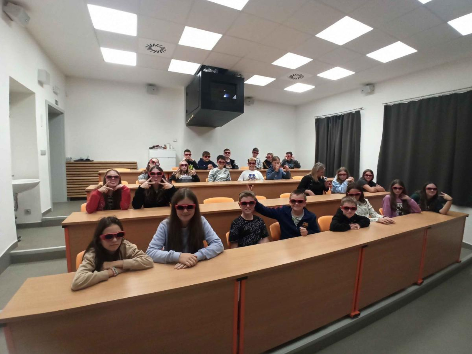 „Vzhůru do nekonečna a ještě dál!“ Podobně daleko jako slova ve slavné hlášce vesmírného strážce Buzze Rakeťáka z animovaného filmu Svět hraček se ve čtvrtek 9. října vypravili žáci šestých tříd. Vyrazili jsme sice vlakem do nedalekého Havlíčkova Brodu na základní školu Nuselskou, nicméně společně jsme prozkoumávali nekonečno vesmíru i hlubiny světového oceánu. Navštívili jsme totiž přírodovědné centrum a planetárium.