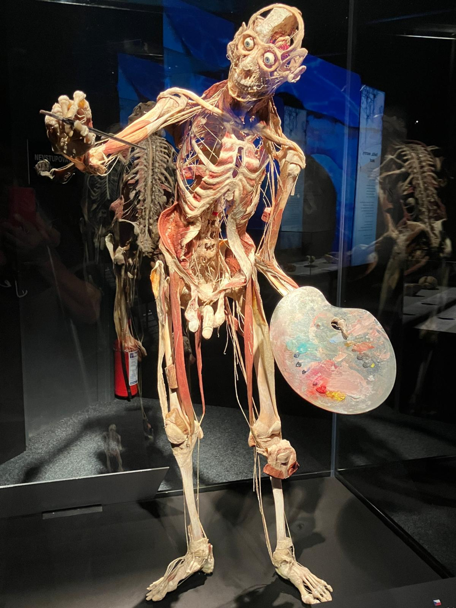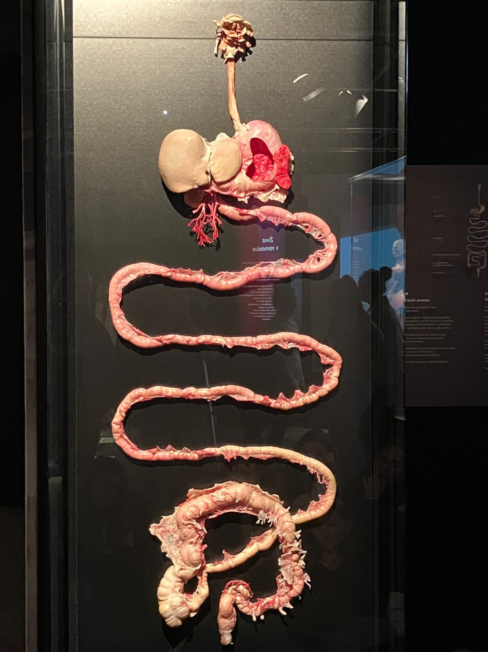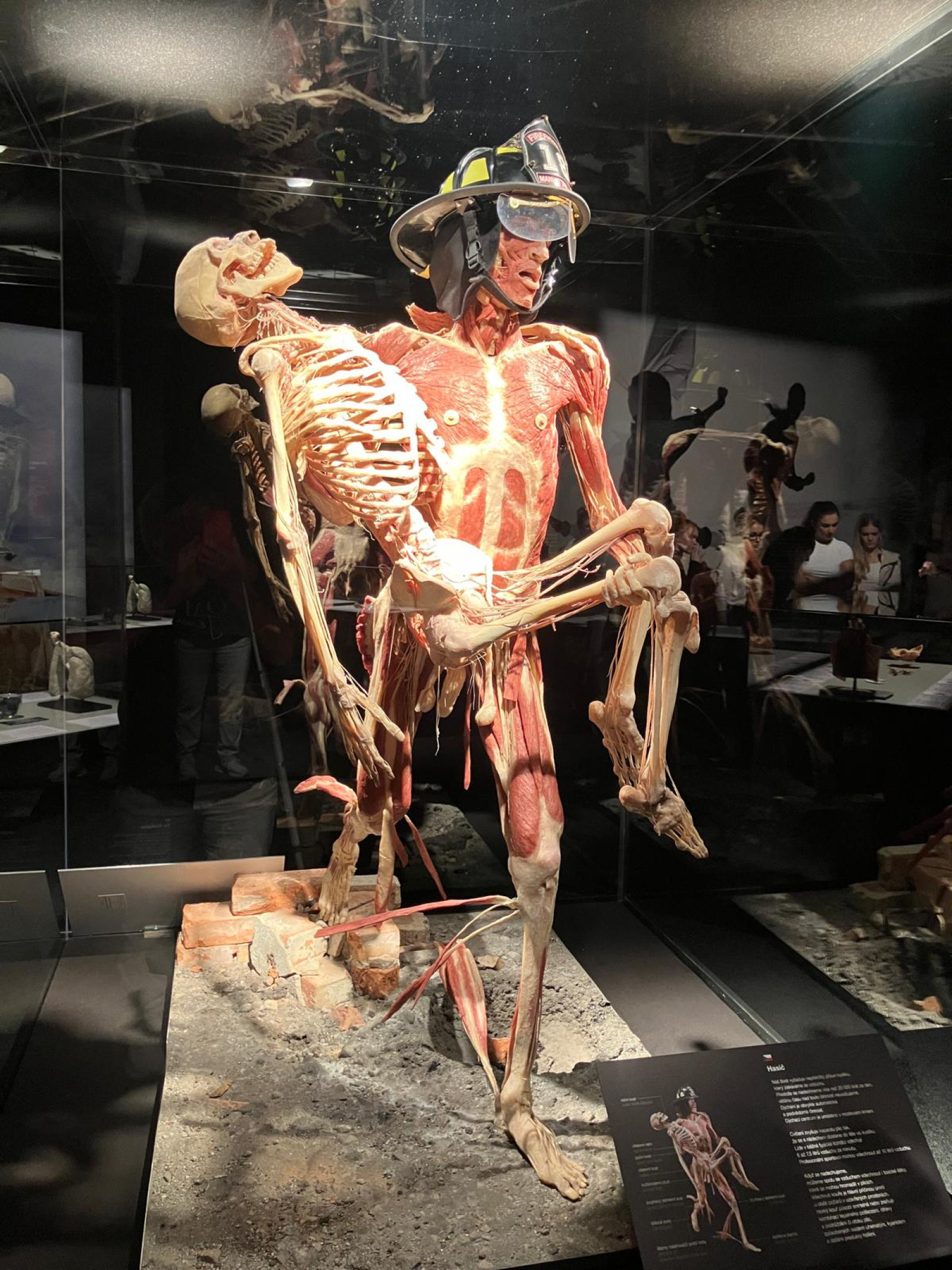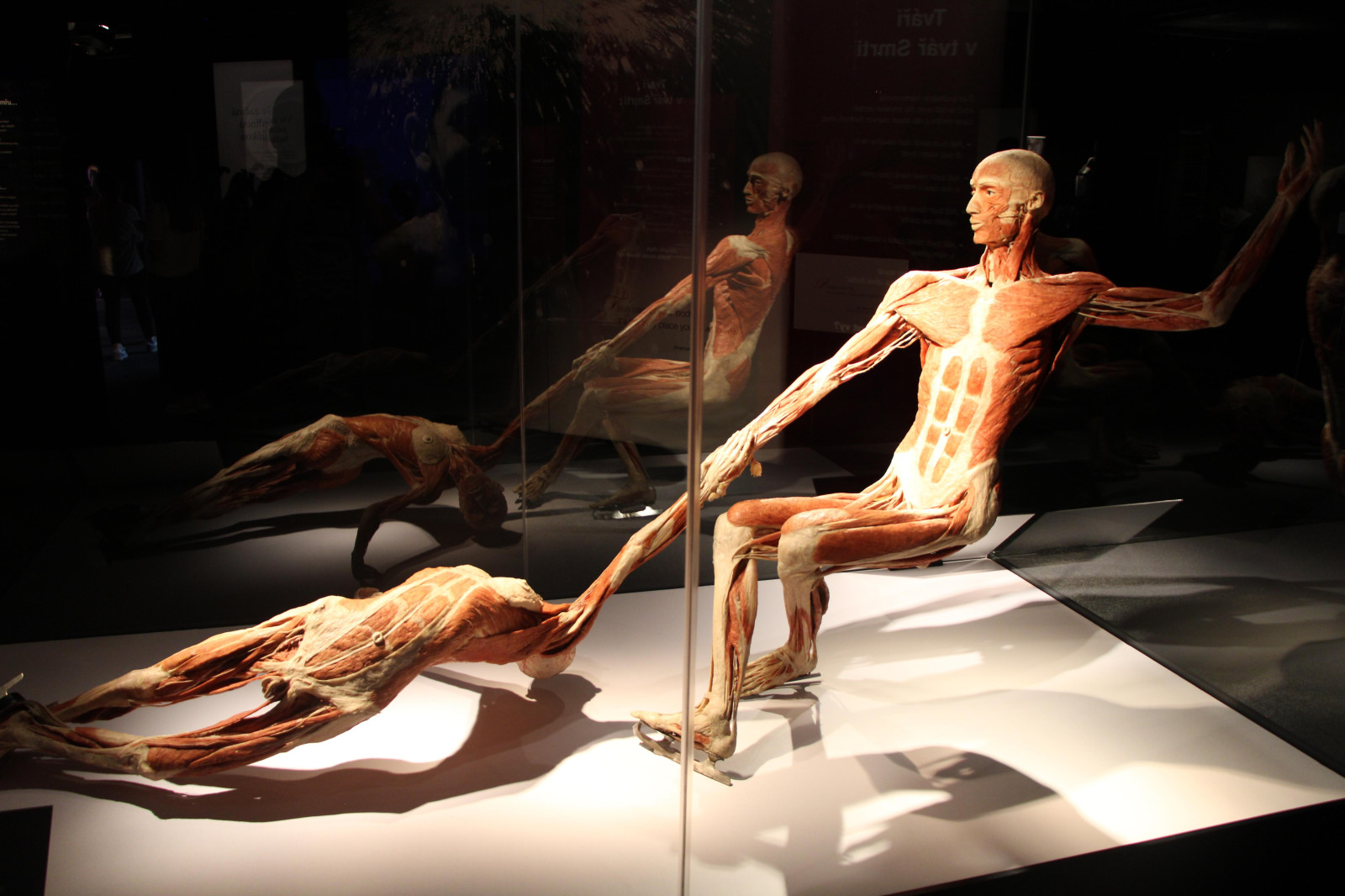 V úterý 21. října proto brzy ráno vyrazili žáci přírodovědných praktik i osmé třídy do Národního muzea. Ačkoli byla komentovaná prohlídka beznadějně vyprodaná, podařilo se nám domluvit termín ještě před otevírací dobou. Vyhnuli jsme se tak dlouhým frontám a mohli si v klidu vychutnat výklad k originálním fosiliím jen pro sebe. Po prohlídce našich dávných předků jsme navštívili i další expozice – Lidé a jejich předci, Zázraky evoluce či Okno do pravěku. Následoval přesun metrem na Chodov, kde si žáci užili rozchod – někteří si dali oběd, jiní využili čas k nakupování. Po pauze nás čekala druhá část exkurze – výstava Body Worlds: Tělo v pohybu. Rozdělili jsme se na dvě skupiny, o které se postarali studenti medicíny. Ti nám poskytli poutavý výklad k jedinečnému pohledu do nitra skutečného lidského těla. Žáci se tak seznámili s fungováním všech hlavních orgánových soustav.