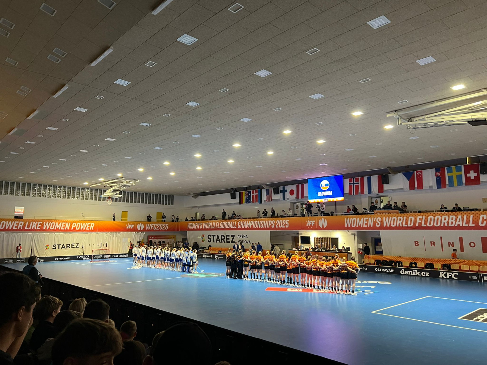 Po dvanácti letech se mistrovství světa žen ve florbale koná v České republice, konkrétně v Brně a Ostravě. Podařilo se nám zajistit lístky na dva osmifinálové zápasy zdarma, a tak autobus plný „sporťáků“ vyrazil v úterý 9. 12. směr Brno. První zápas se hrál od 11 hodin mezi Slovenskem a Nizozemskem. Ačkoliv Nizozemky přijel podpořit velmi početný fanklub, snažili jsme se Slovenkám vytvořit skoro „domácí“ prostředí. Nizozemky sice zaskočily úvodní trefou, Slovenky se však následně rozjely a potvrdily roli favoritek výsledkem 11:4. Utkání sledovala zcela zaplněná menší hala B s kapacitou 1100 diváků a atmosféra byla úžasná. Po utkání jsme se přesunuli do vedlejší, větší haly A, kde jsme sledovali společně s 1700 diváky utkání mezi Norskem a Polskem. Náš tábor se tentokrát rozdělil – zhruba polovina fandila jednomu týmu a polovina druhému. Zápas byl výrazně vyrovnanější. Polky se na začátku ujaly vedení 1:0, Norky však 29 sekund před koncem při hře bez brankářky vyrovnaly na 1:1. V následném desetiminutovém prodloužení gól nepadl, a tak dramatické utkání plné šancí a skvělých zákroků musely rozhodnout až samostatné nájezdy. Nervy drásající „penalty“ rozhodla až osmá série, a z vítězství se nakonec radoval norský tým. Zápas pro nás byl o to pikantnější, protože vítězky narazily na náš tým. Byl to pro nás všechny skvělý zážitek!